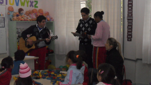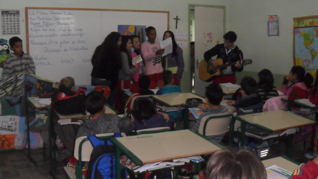 Em seguida foi proposto aos alunos levar os resultados das discursões para fora da sala de aula, para isso eles pintaram em tecido desenhos que representavam atitudes sustentáveis e deram palestras as outras turmas sobre o tema, finalizando as apresentações com uma canção.